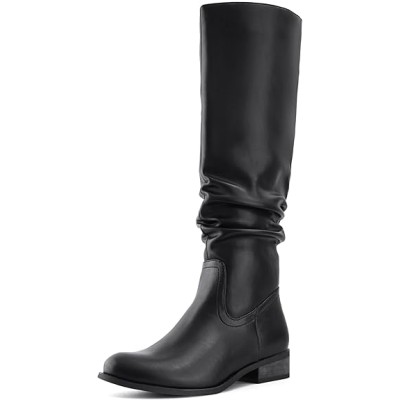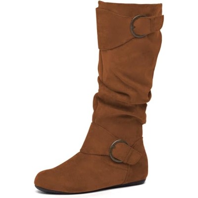 Bettyy Women's Knee High Boots Pull on Fall Weather Slouchy Flat Boots