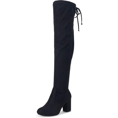 Women's Over The Knee High Boots Suede Thigh High Boot 3 Inch Chunky Heels Zipper Adjustable Opening Shoes