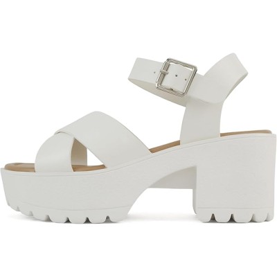 “Joey” ~ Women Open Toe Criss Cross Strap Mid Heel Sandal with Adjustable Ankle Strap