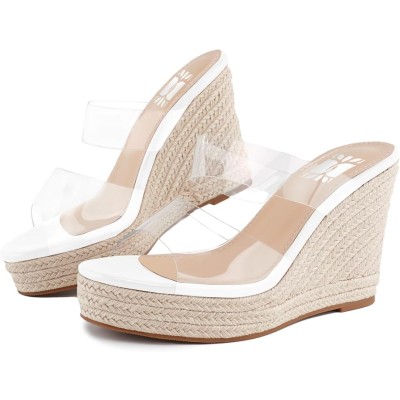 Women Slip On Espadrille Platform Wedge Sandals Slide Open Toe Clear High Heel Sandals