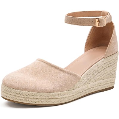 Womens Espadrilles Sandals, Closed Toe Platform for Women Ankle Strap Casual Comfortable Wedge Sandals
