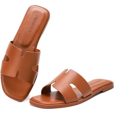 Open Toe Flat Dress Sandals Womens Slide Comfortable Summer Black, White, Tan Sandals for Women