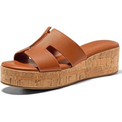 Women's Platform Wedge Sandals Open Toe Slip On Slides Cork Heeled Cutout Comfortable Summer Shoes