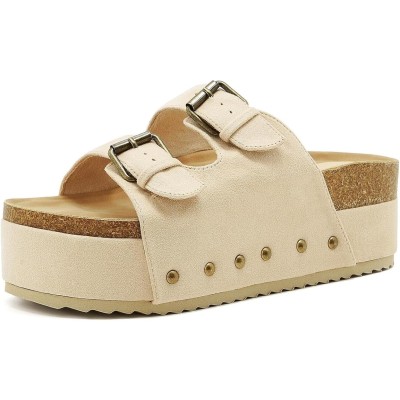 Women's Platform Cork Slides Dual Buckled Straps Clogs Slip On Flatform Sandals for Women Clogs