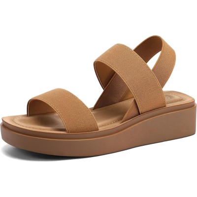 Women's Platform Wedges Sandals Slingback Lightweight Elastic Ankle Strap Low Wedges Walking Sandals Comfortable Slip On Casual