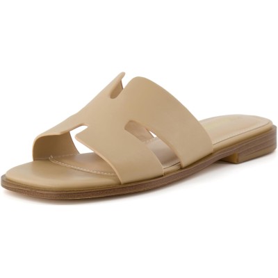 Voyage Cutout Strap Slides for Women, Slip On Summer Flats, Trendy Footwear, Comfortable Vacation Style Sandals for Women 2025