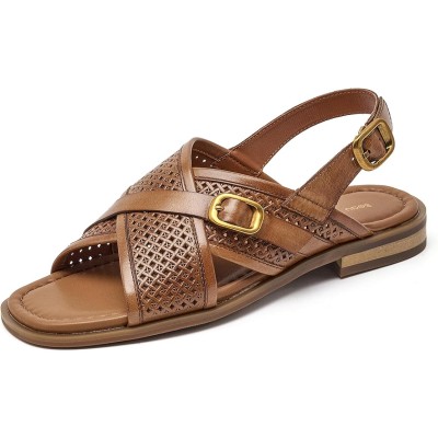 Flat Sandals for Women,Wide Cross Band Sandals for Women,Leather Comfortable Sandals,Summer Open-Toe Sandals for Beach Walking