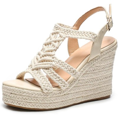 Topic Open Toe Buckle Ankle Strap Espadrilles Flatform Wedge Casual Sandal