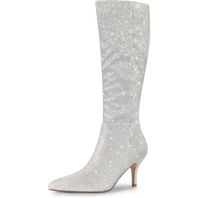 Women's Sparkle Glitter Pointy Toe Stiletto Heel Knee High Boots