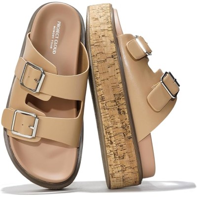 Women's Platform Cork Slides Dual Buckled Straps Clogs Slip On Flatform Sandals for Women Clogs