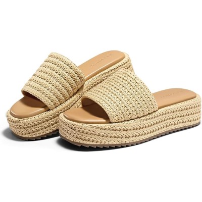 Womens Platform Sandals Raffia Espadrilles Slip on Open Toe Cute Boho Summer Beach Slide Sandals