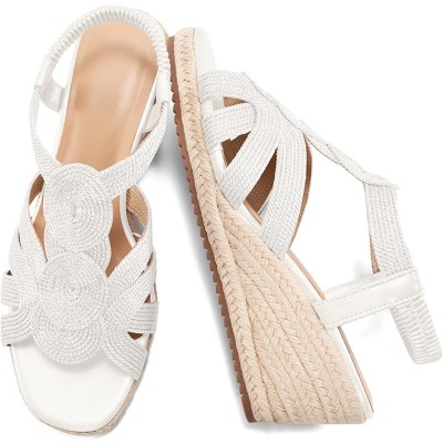 Wedge Sandals for Women Espadrilles: Comfortable Platform Elastic Ankle Strap Wedges Heels Dressy Open Toe Summer Wedding Shoes