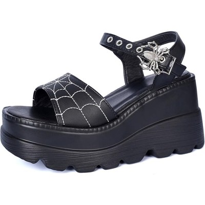 women black platform sandals goth chunky wedge heel summer sandals girls gothic punk platform sandals for women metallic spider