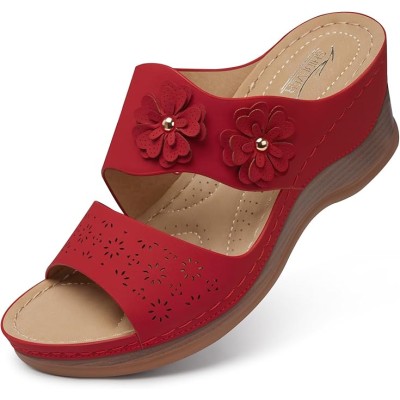 Comfortable Cork Sandals, Women's Open-Toe Slip On Buckle with Arch Support, Beach & Dressy Summer