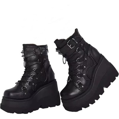 Women's High Heel Combat Boots Square Toe Lace Up Ankle Booties Fashion Wedge Chunky Platform Boots Zipper Bootie Shoes