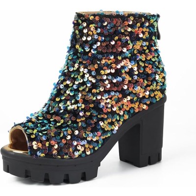 Fashion Womens Peep Toe Sparkle Ankle Boots Platform Heel Glitter Booties