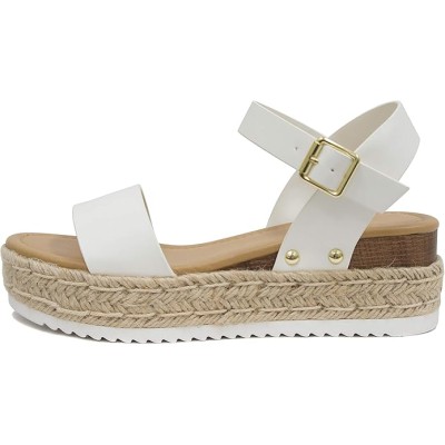 Topic Open Toe Buckle Ankle Strap Espadrilles Flatform Wedge Casual Sandal